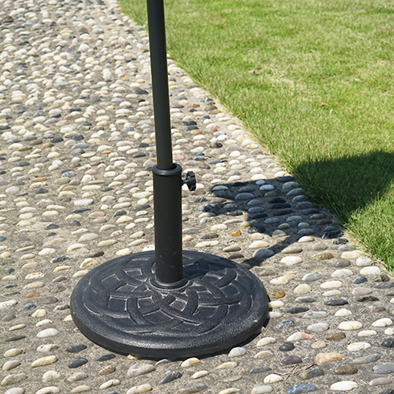 বেসটি রজন উপাদান দিয়ে তৈরি এবং ওজন 19 কেজি। রজন উপাদানটিতে শক্তিশালী আবহাওয়া প্রতিরোধের, জারা প্রতিরোধের বৈশিষ্ট্য রয়েছে এবং সহজেই বিকৃত হয় না। এটি বহিরঙ্গন পরিবেশের পরীক্ষা সহ্য করতে পারে এবং বেসের দীর্ঘমেয়াদী স্থায়িত্ব নিশ্চিত করতে পারে। একই সময়ে, 19 কেজি ওজন বেসকে কার্যকরভাবে শক্তিশালী বাতাসে টিপিং থেকে বিরত রাখতে যথেষ্ট স্থিতিশীল করে তোলে।