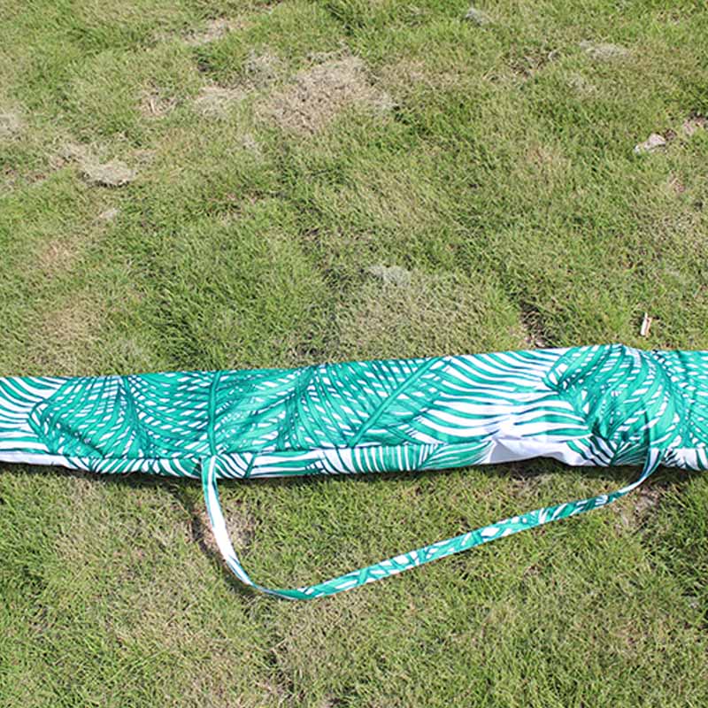 সৈকত ছাতা 120g পলিয়েস্টার ফ্যাব্রিক দিয়ে তৈরি, যার ভাল স্থায়িত্ব এবং ইউভি প্রতিরোধের রয়েছে। ফ্যাব্রিকটি রৌপ্য আবরণ দিয়ে রেখাযুক্ত, যা কার্যকরভাবে সূর্যের আলো প্রতিফলিত করতে পারে, তাপ শোষণ হ্রাস করতে পারে এবং আরও ভাল সানশেড প্রভাব সরবরাহ করতে পারে। একই সময়ে, ফ্যাব্রিক পৃষ্ঠটি মসৃণ এবং পরিষ্কার এবং রক্ষণাবেক্ষণ করা সহজ।