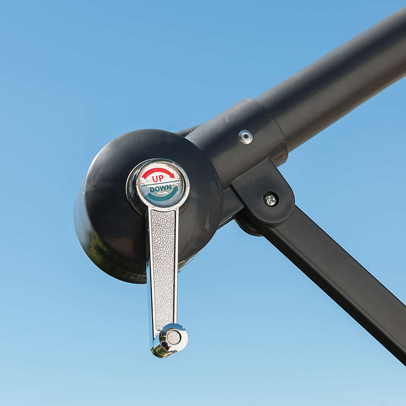 অনন্য ক্যান্টিলিভার ডিজাইনটি ছাতাটিকে একদিকে ঝুলিয়ে দেওয়ার অনুমতি দেয়, মাটিতে কোনও বাধা ছাড়াই ব্যবহারকারীদের ছাতার নীচে অবাধে চলাচল করতে দেয়।