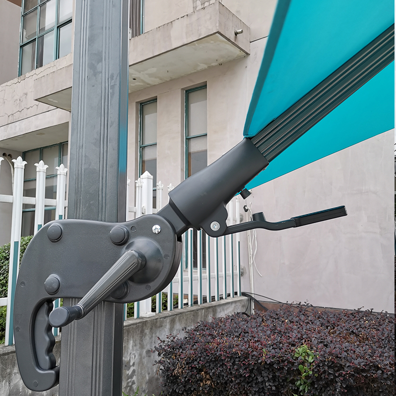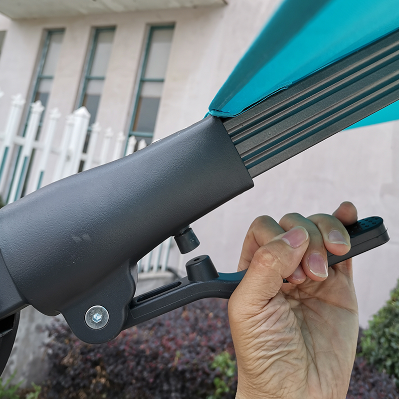 ছাতা ফ্রেমটি 14 মিমি*24 মিমি অ্যালুমিনিয়াম পাঁজর এবং 53 মিমি*76 মিমি অ্যালুমিনিয়াম খুঁটি গ্রহণ করে, যা অত্যন্ত উচ্চ শক্তি এবং স্থায়িত্বযুক্ত এবং খারাপ আবহাওয়ার পরীক্ষা সহ্য করতে পারে। অ্যালুমিনিয়াম উপাদান কেবল হালকা নয় তবে ভাল জারা প্রতিরোধেরও রয়েছে, যা ছাতার পরিষেবা জীবনকে প্রসারিত করতে পারে। অনন্য ক্যান্টিলিভার কাঠামো ছাতা পৃষ্ঠটিকে বাহ্যিক প্রসারিত করতে দেয় এবং স্থলটি বাধা-মুক্ত, যা ব্যবহারকারীদের ছাতার নীচে সরানো সুবিধাজনক। ক্যান্টিলিভার কাঠামো ছাতা মেরুটি স্থান দখল করতে বাধা দিতে পারে, ছাতার নীচে স্থানটিকে আরও প্রশস্ত করে তোলে।  ছাতা পৃষ্ঠটি একটি ম্যানুয়াল খোলার এবং সমাপনী নকশা গ্রহণ করে, যা পরিচালনা করা সহজ এবং সুবিধাজনক। ছাতা পৃষ্ঠের একটি নির্দিষ্ট ঝোঁক কোণও রয়েছে, যা সূর্যের অবস্থান অনুযায়ী সানশেড প্রভাবকে সামঞ্জস্য করতে পারে, আরও ভাল রৌদ্রের অভিজ্ঞতা সরবরাহ করে। ছাতা পৃষ্ঠটি বিভিন্ন ব্যবহারকারীর ব্যক্তিগতকৃত প্রয়োজনগুলি পূরণ করতে এবং বহিরঙ্গন স্থানে আরও রঙ এবং প্রাণশক্তি যুক্ত করতে বিভিন্ন রঙে উপলব্ধ।