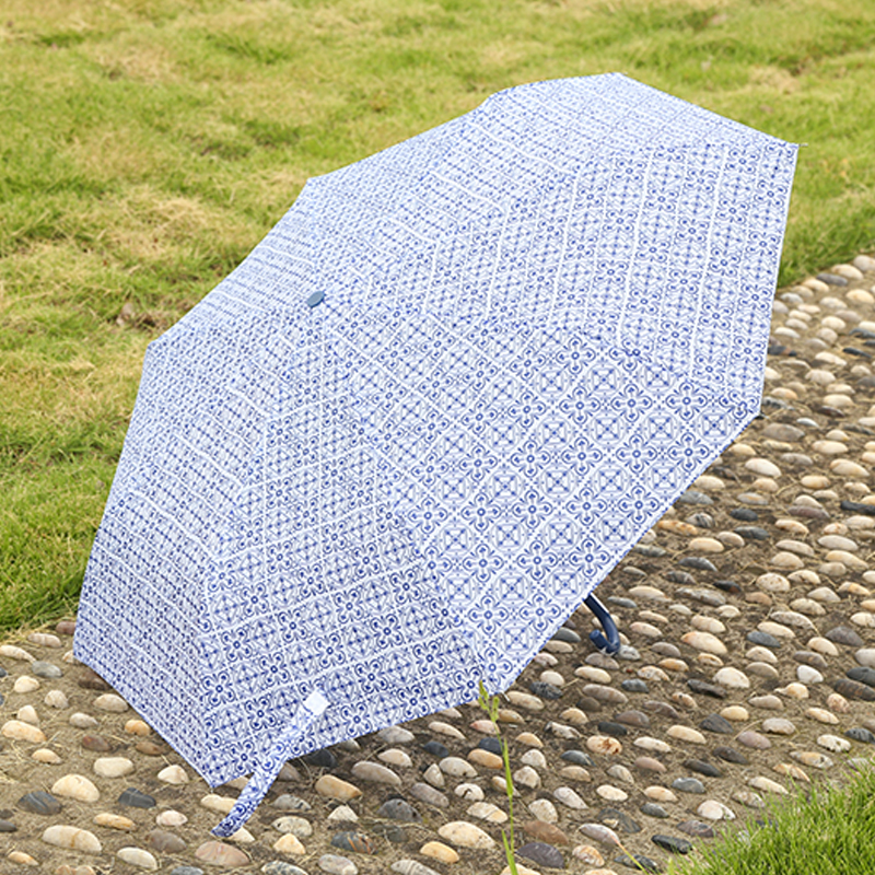 ছাতা পৃষ্ঠের নীল মুদ্রিত প্যাটার্নটি দুর্দান্তভাবে ডিজাইন করা, ফ্যাশনেবল এবং উদার এবং বিভিন্ন ব্যবহারকারীর নান্দনিক চাহিদা পূরণ করতে পারে।