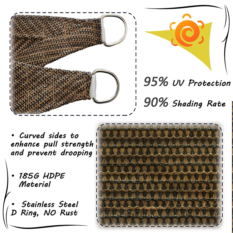 উচ্চ ঘনত্বের পলিথিন উপাদান: সজাগটি 185g উচ্চ ঘনত্বের পলিথিন (এইচডিপিই) উপাদান দিয়ে তৈরি হয়, যার স্থায়িত্ব এবং ইউভি প্রতিরোধের রয়েছে। এই উপাদানটি আপনাকে ইউভি ক্ষতি থেকে রক্ষা করে 95% অতিবেগুনী রশ্মির কার্যকরভাবে ব্লক করতে পারে। একই সময়ে, সজাগের 90% শেডিং হারও রয়েছে, আপনাকে শীতল এবং আরামদায়ক বহিরঙ্গন পরিবেশ সরবরাহ করে।